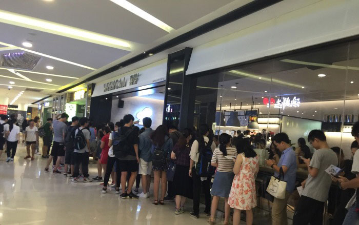2017年,大家还记得排队一个小时才喝到到一杯知识奶盖茶的“喜茶”品牌吧,喜茶把茶饮这个市场从低迷推到高峰。目前依然很火热,喜茶的火从开始大家觉得是炒作,到最后大家都陆陆续续的去亲自体验,我也是其中之一,之前我一直不相信,然后我和朋友一起去深圳考察市场,顺道过去深圳万象城的那家喜茶黑金店去看下,虽然没有见到人山人海的场面,但是火热确实算的上,我大概是11点左右到哪里,然后坐了大概一个半小时,购买的人群从没断过。随着下班时间越来越火爆,排队的人也慢慢的增多。喜茶这里用了一个小策略,如果人气不够旺的时候,制作人员有意拖长制作时间,然后让排队的人越来越多,这个是我亲自去体验的,我们第一次购买了一杯芝士奶盖,大概在15分钟能拿到,后来我们在差不多人群的情况的下,购买同一杯,却发现出餐时间多了15分钟。在这15分钟里,排队的人群差不多快到门外了,就是这样,排队的人越多,说明店内产品越火爆。这是喜茶使用的排队效应策略。