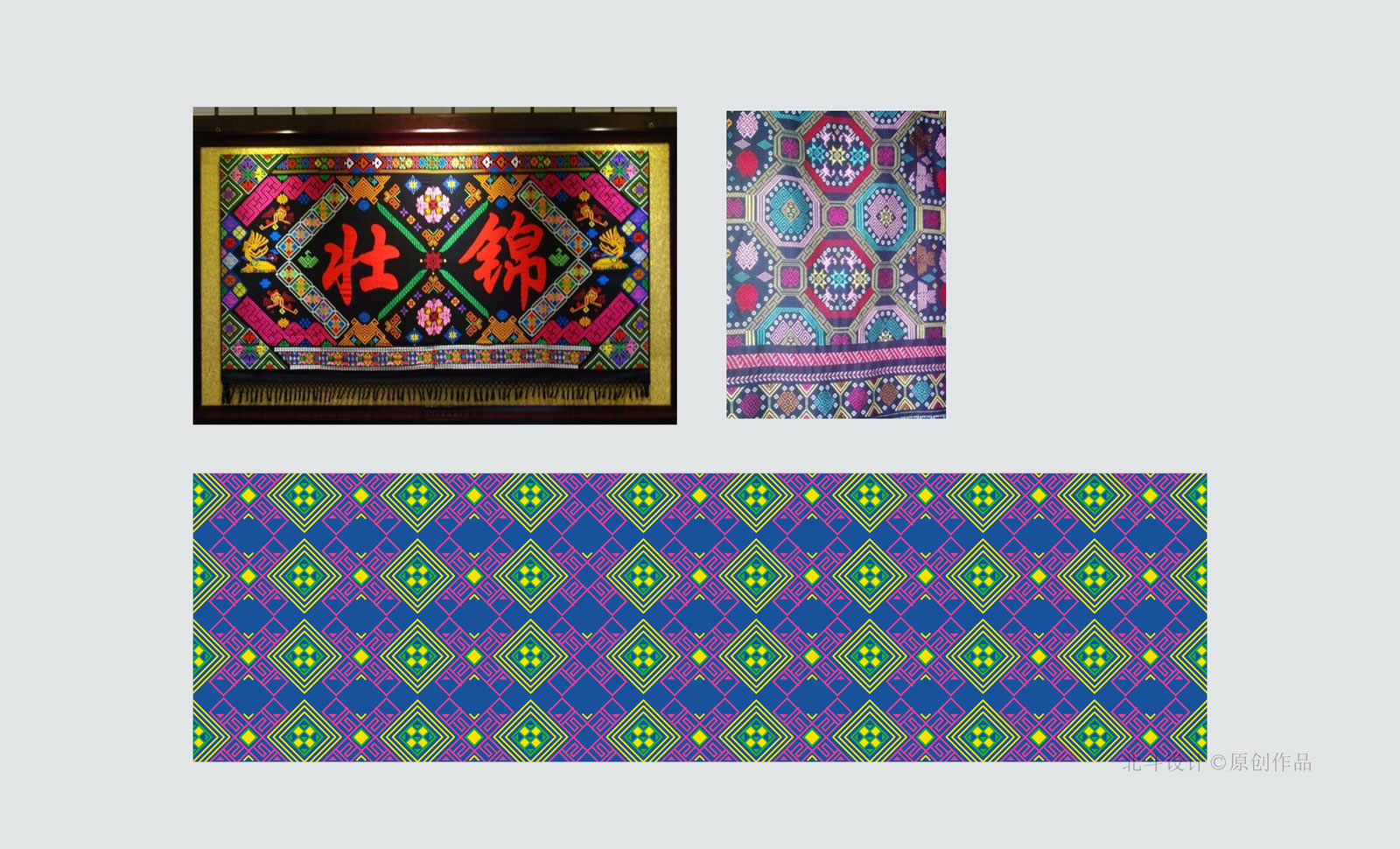 通过对于广西文化的深入研究,我们选择了广西壮族的一种民族文化图腾——“壮锦”,作为邦蓓优品牌的寄生文化图腾;壮锦,与云锦、蜀锦、宋锦并称中国四大名锦,据传起源于宋代,是中华民族文化瑰宝。我们通过基于产品陈列识别与后续不同媒体的应用,对壮锦图腾重新设计排布,目的是为了更加契合不同产品包装载体的陈列,为产品后续的创意预留更加充沛的发挥空间。